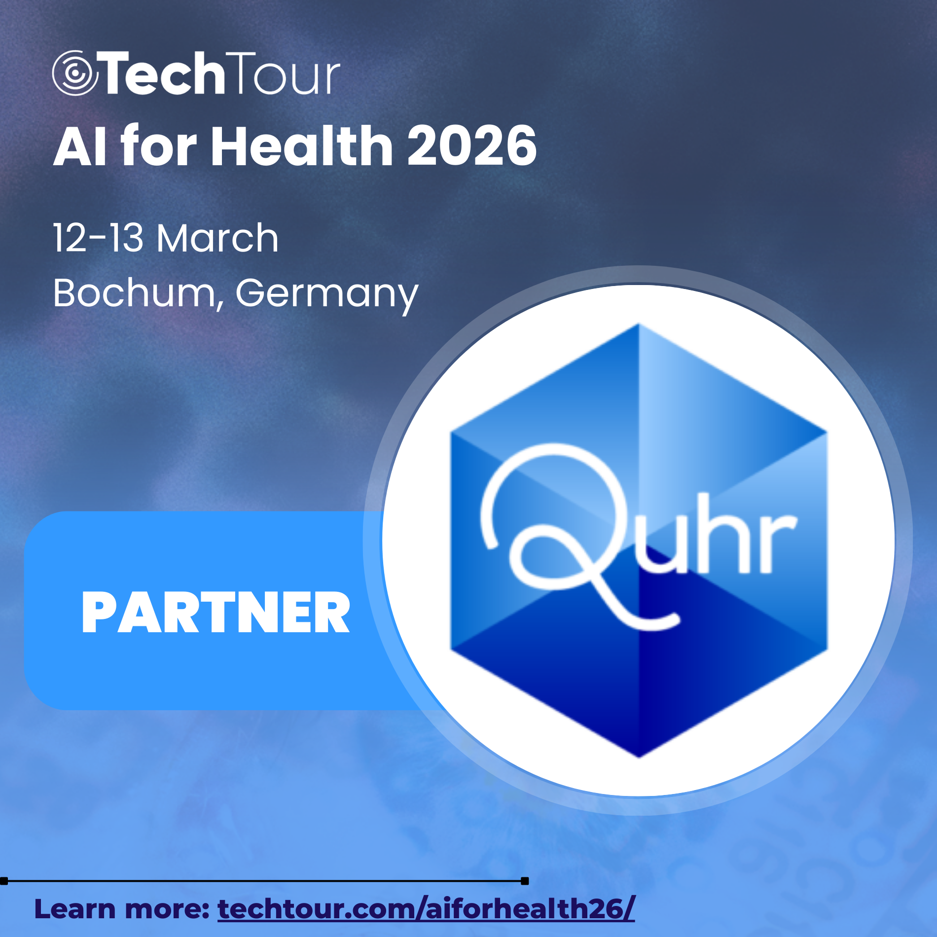 Wir sind Partner der Tech Tour AI for Health 2026 und möchten euch herzlich einladen, bei dem Event dabei zu sein! Trefft uns am 12. & 13. März 2026 in Bochum, um gemeinsam mit führenden Köpfen aus dem Bereich Gesundheit und Künstliche Intelligenz zu netzwerken, zu lernen und neue Impulse zu setzen.